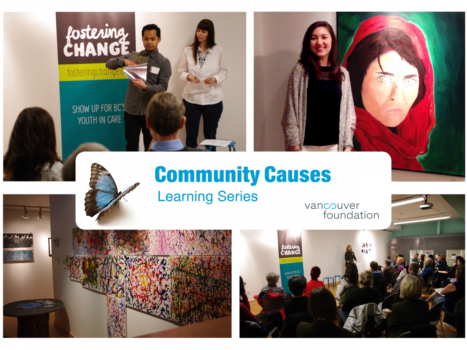 In November, we hosted a Community Causes event to learn more about youth homelessness, and Vancouver Foundation’s work to improve the outlook of foster care youth through our Fostering Change initiative. The ArtStarts Gallery welcomed us into their space, which is exclusively devoted to displaying young people’s art. We also heard from two charities that received program funding from a Vancouver Foundation Fostering Change grant: Youngstarters and Leave Out Violence . Through story-telling, program participants helped us understand how youth can communicate through artistic expression, and how art can start an open dialogue about important issues that youth face.